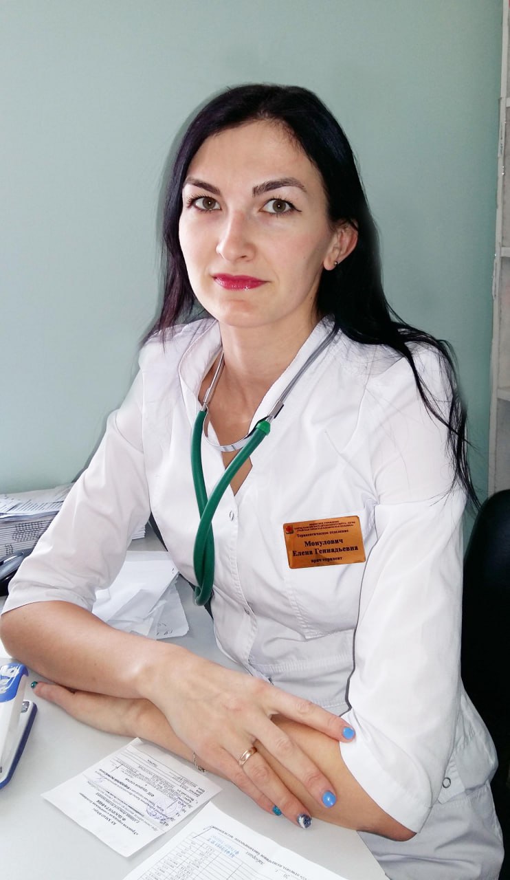 Заведующий врач-терапевт Монулович Елена Геннадьевна : 8 (34676) 9-13-12 доб. 132 |