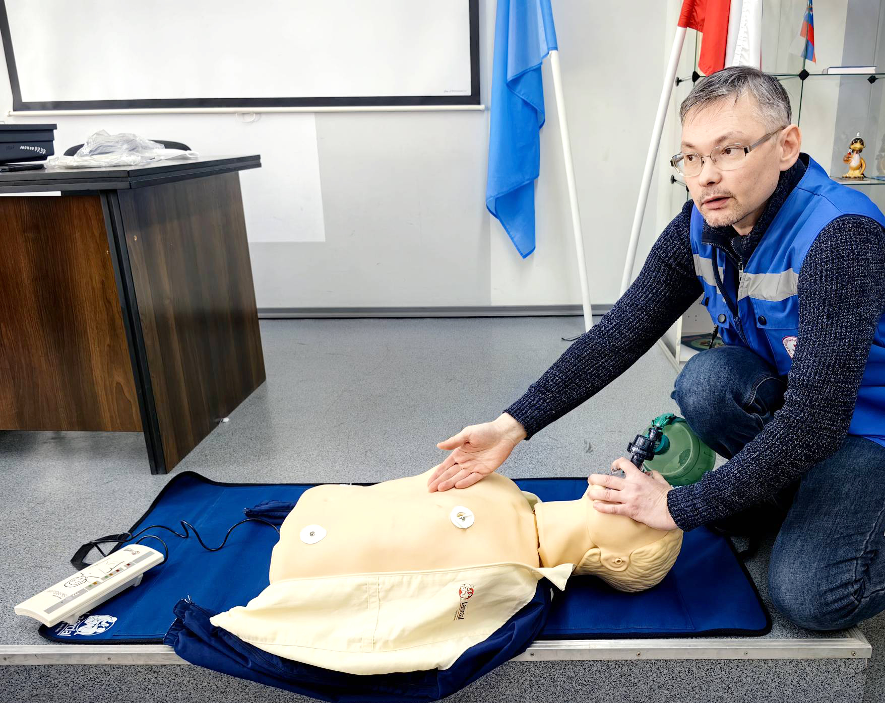 «Важно понимать, что главная цель первой помощи – спасти жизнь и избежать дальнейших травм и осложнений, – делится заведующий отделением СМП. – Поэтому занятия были посвящены таким важным вещам, как проведение искусственного дыхания и сердечно-легочной реанимации, остановка кровотечений, наложение жгутов и повязок, способы спасения от попадания инородного тела в дыхательные пути».