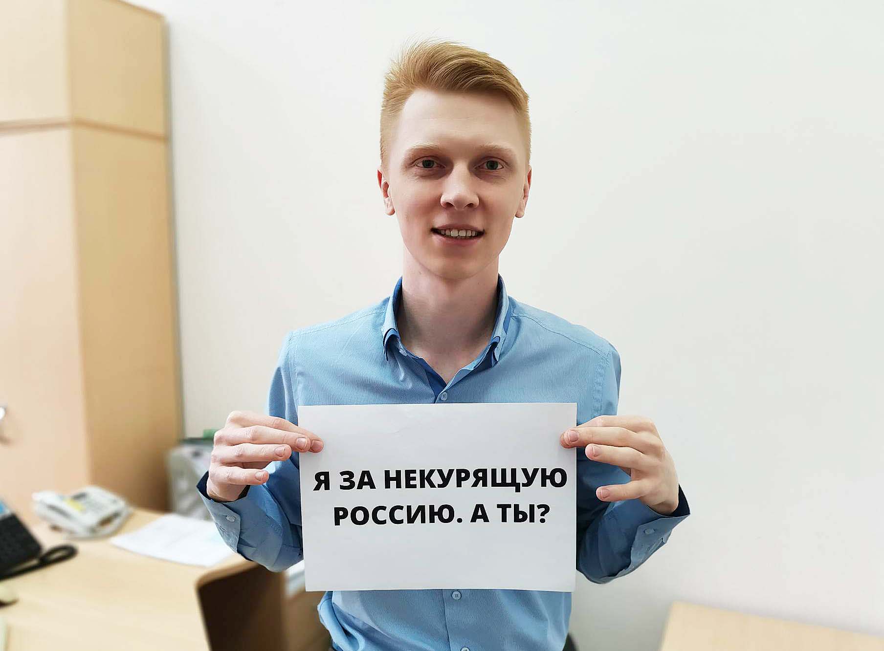 Каждый, кто хочет поддержать Международный день отказа от табака, может самостоятельно распечатать надпись «Я за некурящую Россию. А ты?»,