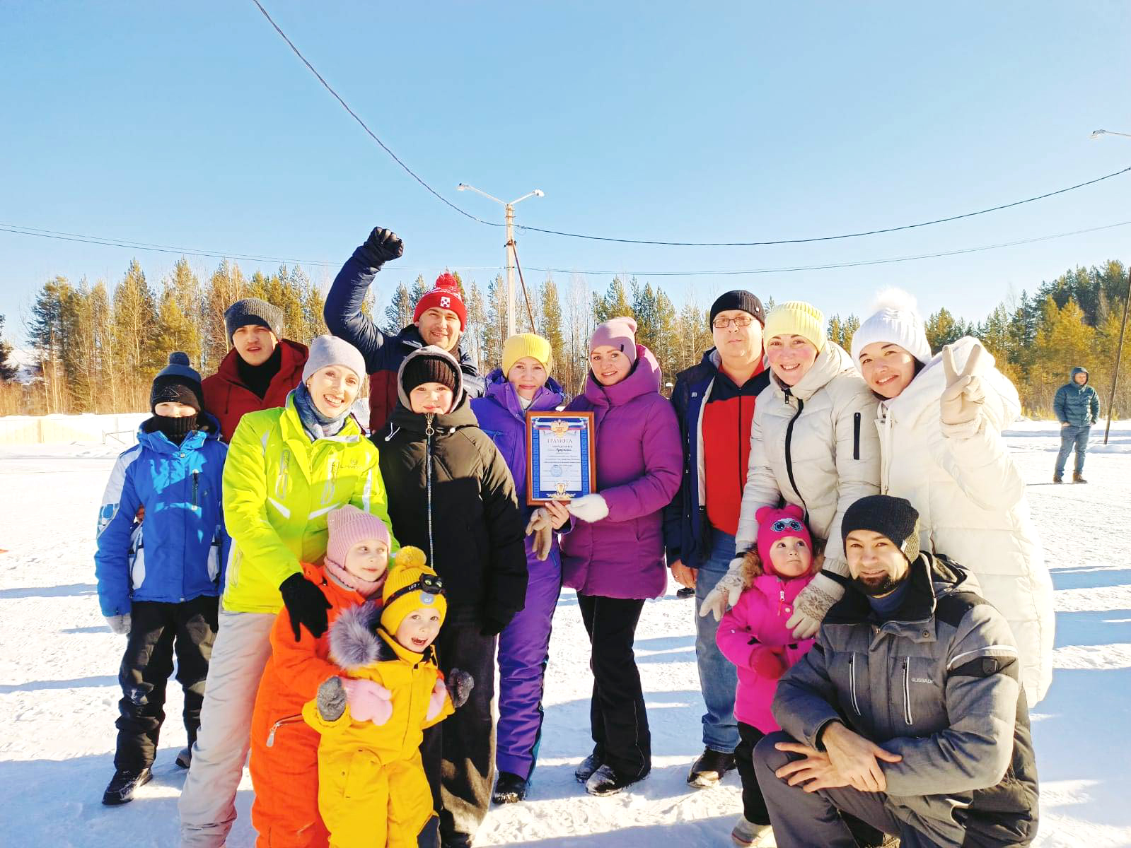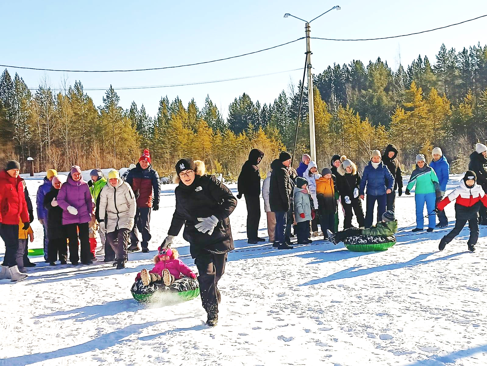 Погода порадовала всех: ясное небо, яркий солнечный свет и легкая морозная свежесть создали идеальные условия для активного отдыха в лесу.