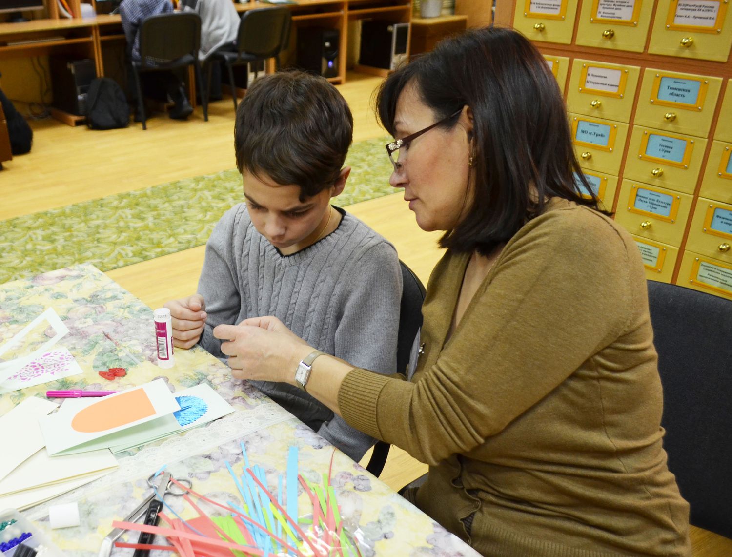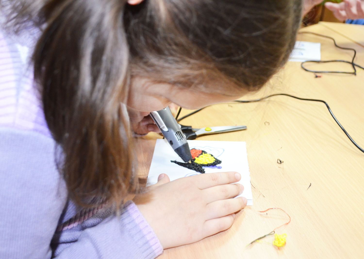 А на интерактивной площадке творили чудеса. Дети вместе с мамами участвовали в мастер – классах, которые организовали педагоги дополнительного образования ЦДО. Ребята впервые работали 3D ручкой и в трехмерном измерении чертили бабочек для своих мам, за соседним столом можно было научиться рисовать на ткани. Рядом дети мастерили своими руками настоящий сюрприз – открытку ко Дню матери.