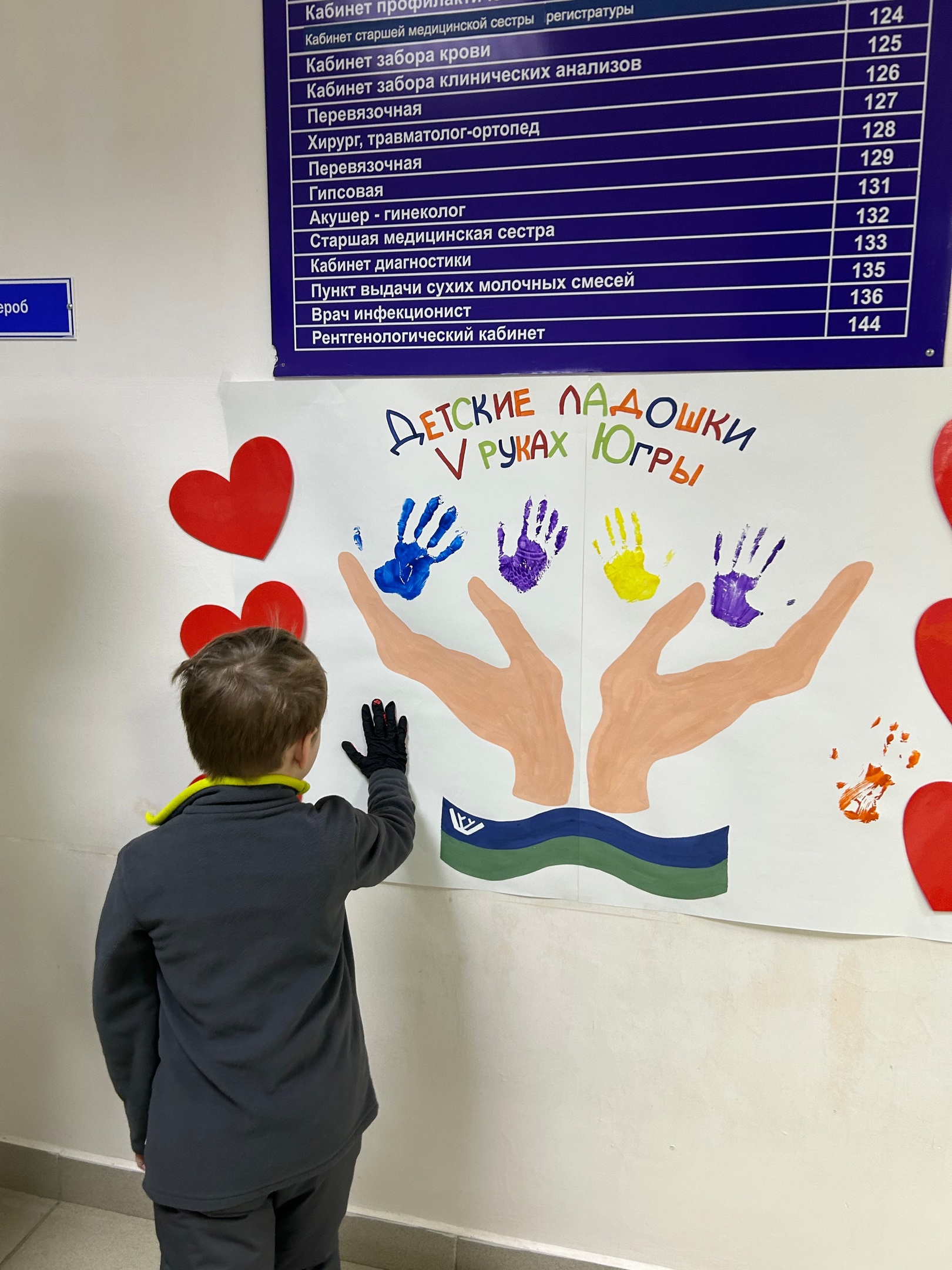 После завершения осмотров ребята с интересом вовлеклись в процесс раскрашивания своих ладошек, чтобы присоединиться к большому числу югорских детей, принимающих участие в этом проекте.