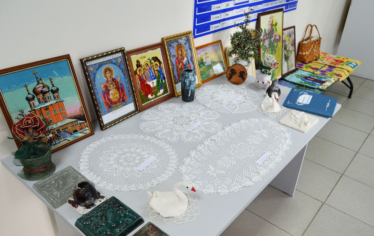 – Мы приурочили выставку ко Дню мамы, а решили ее организовать здесь – в детской поликлинике. Сюда приходят множество детей и родителей – лучшего места и не найти, – рассказывает председатель Совета ветеранов Урайской больницы Тамара Сабурова. – Хоть мы все находимся на пенсии, но не сидим дома, сложа руки, а все также активны и занимаемся творчеством.