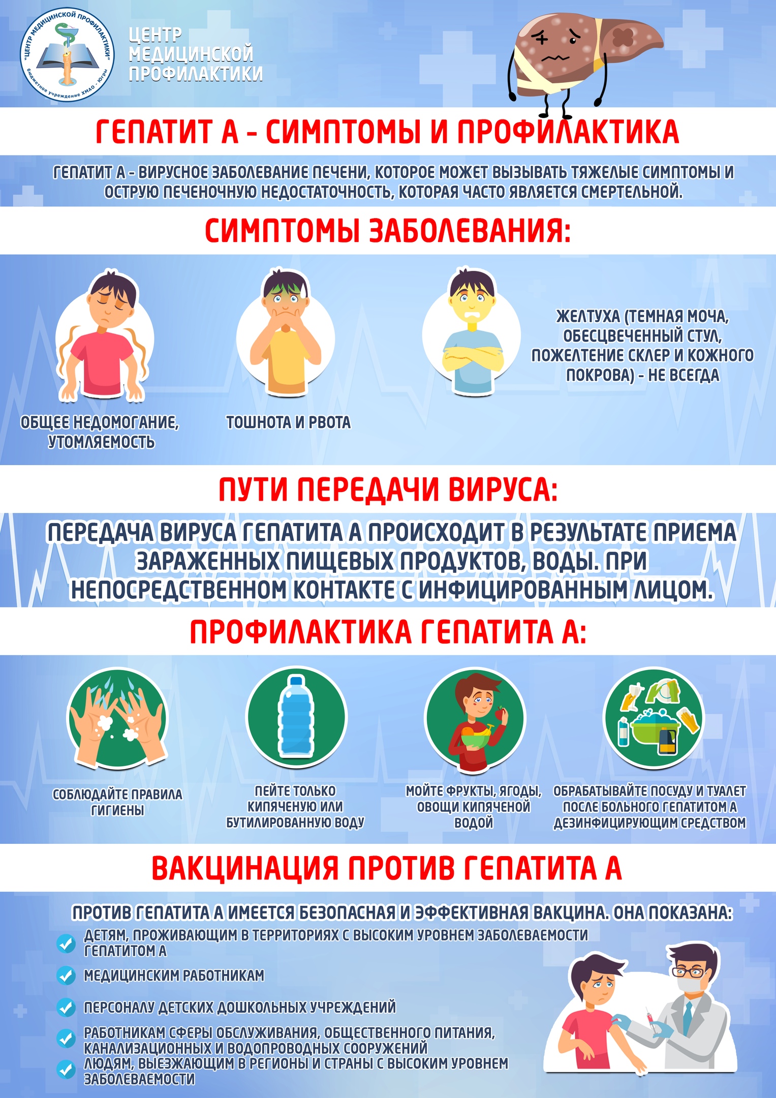 Для профилактики гепатита А имеется безопасная и эффективная вакцина. Она особенно показана детям, проживающим на территориях с высоким уровнем заболеваемости гепатитом А. Медицинским работникам, воспитателям, персоналу детских дошкольных учреждений и общественного питания, работникам по обслуживанию канализационных и водопроводных сооружений. А также людям, выезжающим в регионы с высоким уровнем заболеваемости