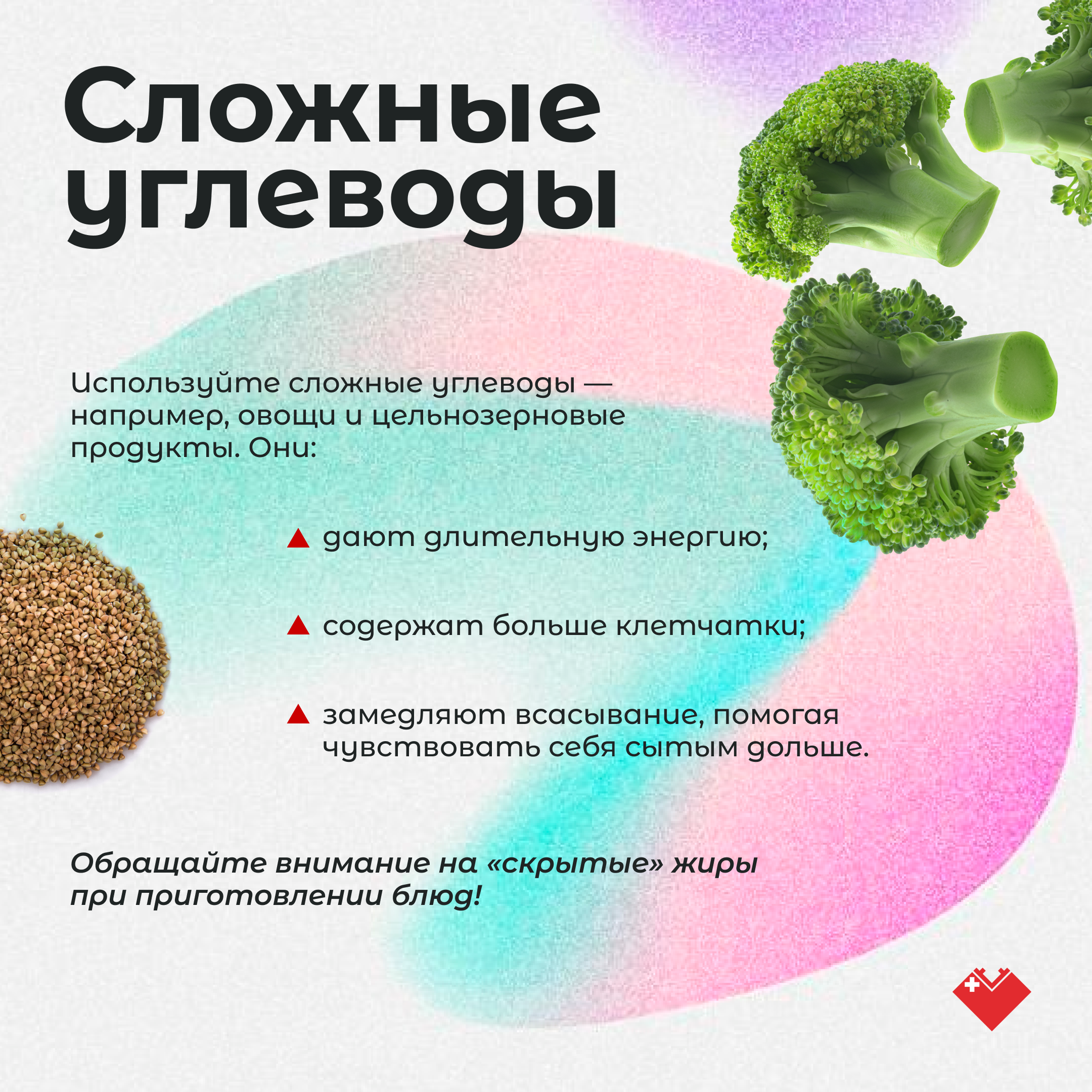«Используйте в питании сложные углеводы, так как это основной источник энергии для всех клеток нашего организма. Но углеводы бывают разными, - поясняет Анна Михайловна. - Простые углеводы, например, сахар, варенье, мед, шоколад, быстро всасываются, и их энергия также быстро расходуется. Сложные углеводы, такие как, овощи, фрукты и цельнозерновые продукты, напротив, дольше утилизируются, что дает нашему телу возможность использовать их как энергию в течение длительного времени без риска их отложения в виде жира».