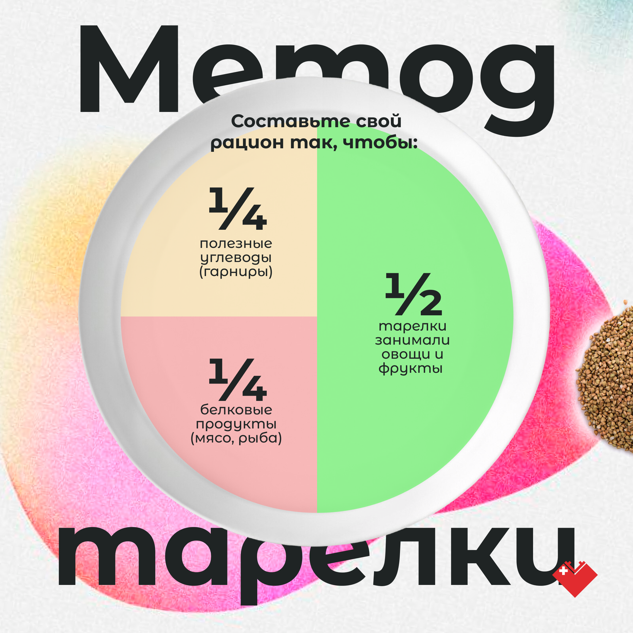 Для формирования здорового рациона врач рекомендует включать фрукты и овощи в каждый приём пищи, цельные злаки и придерживаться «метода тарелки». Данное правило заключается в рационе питания, который должен на ½ состоять из овощей и фруктов, ¼ отводится на «полезные углеводы» и еще ¼ — на белковые продукты (мясо, рыба).