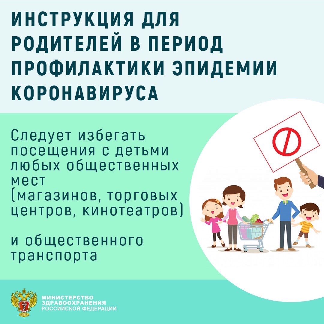 Следует избегать посещения с детьми любых общественных мест (магазинов, торговых центров, кинотеатров) и общественного транспорта.