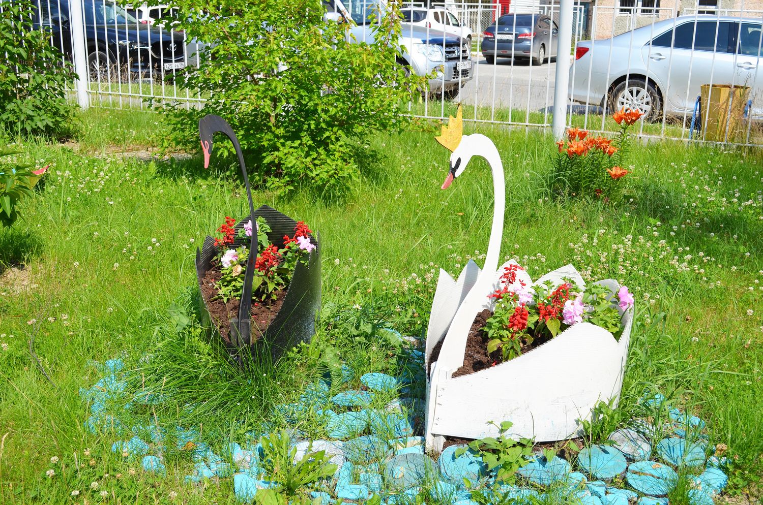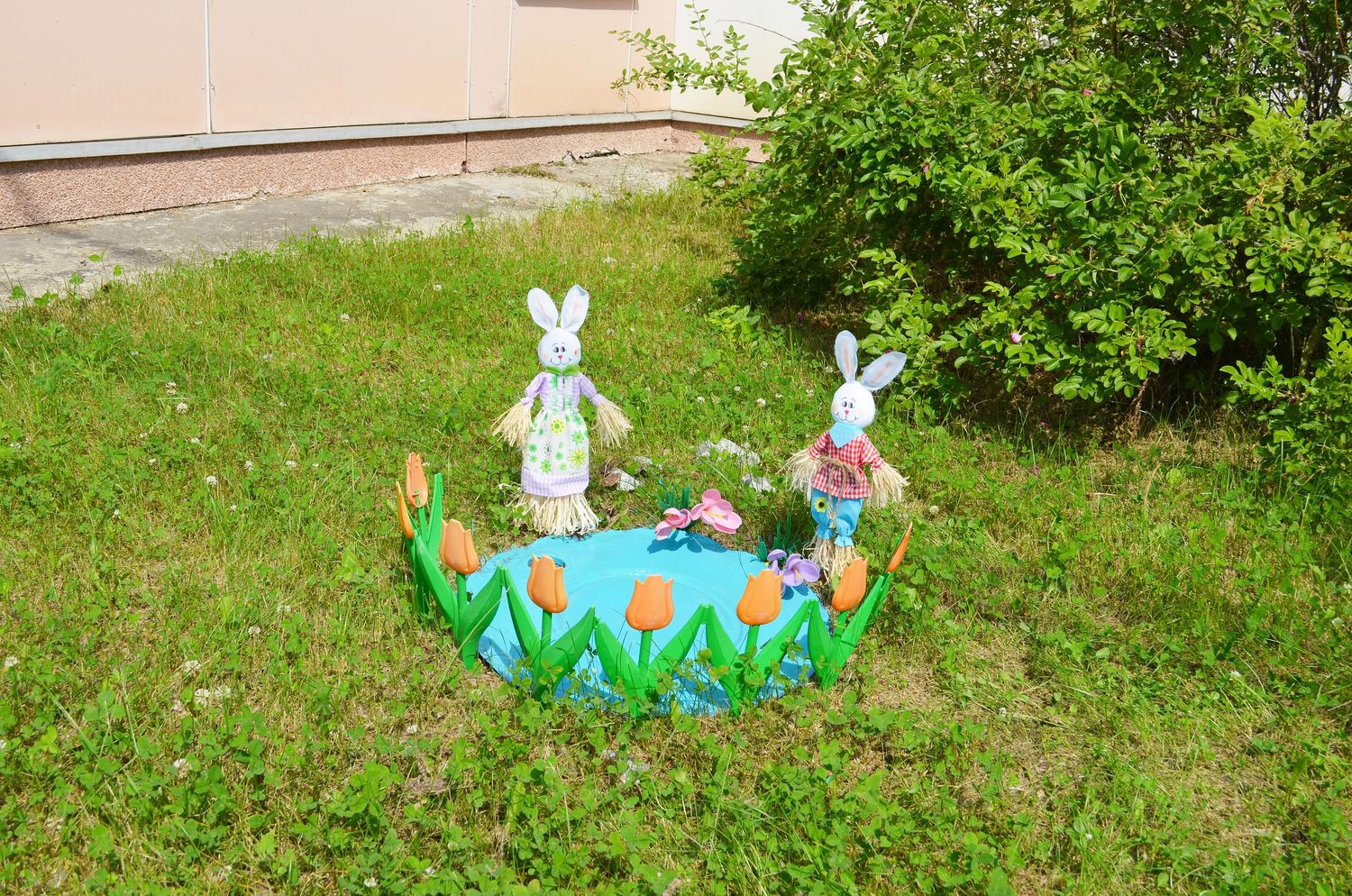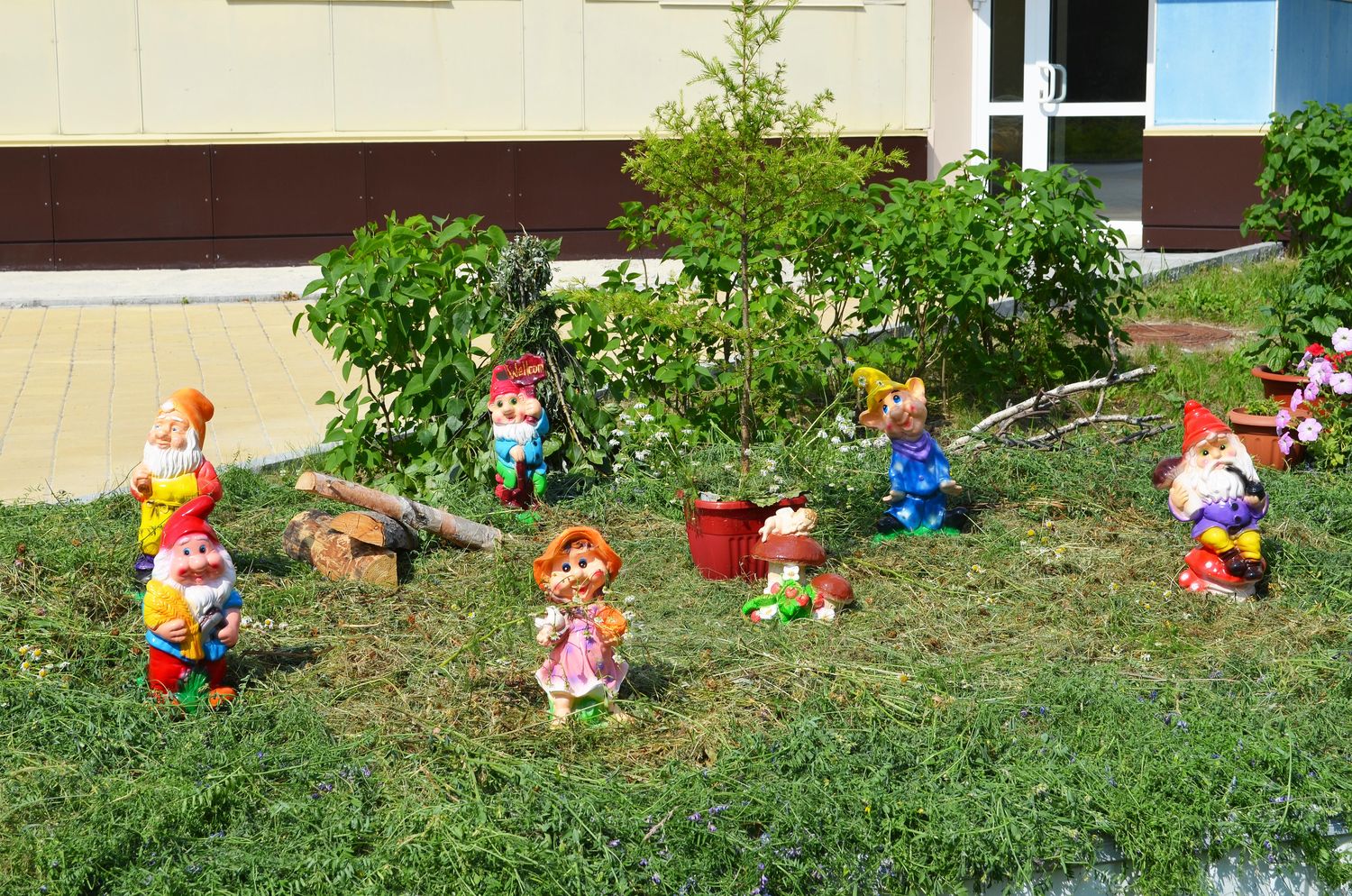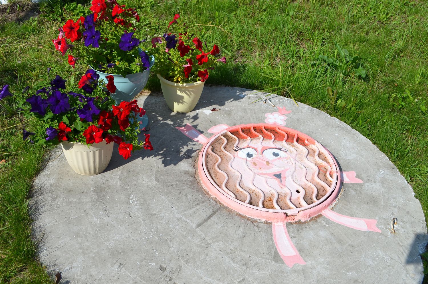 Так, на территории детской поликлиники появилась еще одна игровая зона для детей: нарисованные на асфальте разноцветные классики, лабиринт, змейка-алфавит и многое другое. Тут же расположилась полянка, на которой живут гномы. А канализационные люки превратились в знаменитых героев мультфильма «Смешарики». «Мы не редко наблюдаем, как родители вместе с детьми играют в классики или с большим интересом рассматривают новшества, – рассказывает заведующий детской поликлиникой Наталья Гелеван. – Мы постарались сделать так, чтобы нашим маленьким пациентам было комфортно не только в стенах нашего учреждения, но и за его пределами». А, например, рядом с педиатрическим отделением появился пруд с уточками, на полянке разместились коза и семеро козлят: все фигурки сделали и разрисовали сотрудники отделения. Пасечник с самоваром встречает гостей и пациентов стационара около пищеблока. При оформлении клумб повара использовали настоящий салат сорта «Батавия».