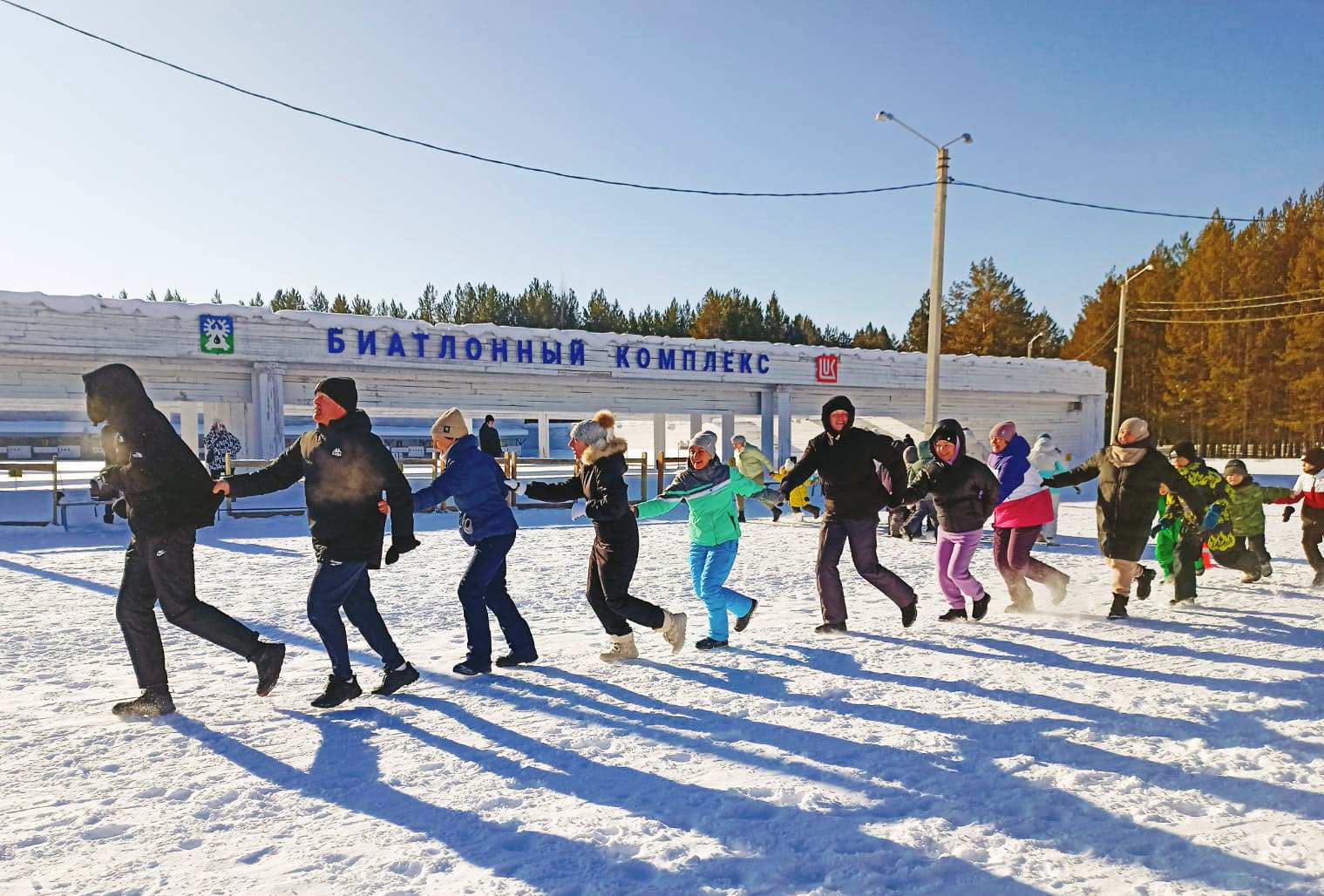 Погода порадовала всех: ясное небо, яркий солнечный свет и легкая морозная свежесть создали идеальные условия для активного отдыха в лесу.