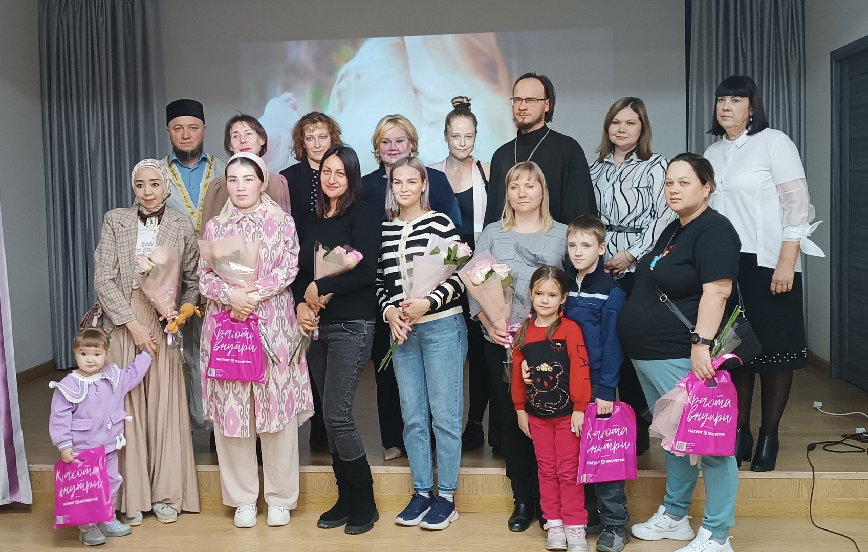 Главными гостями мероприятия стали будущие мамы, ожидающие своего первенца, и опытные многодетные мамы. В адрес собравшихся прозвучали приветствия и поздравления от священника Павла и имама Абдульхалима Хазрата, которые пожелали женщинам крепкого здоровья, легких родов и счастливого материнства.