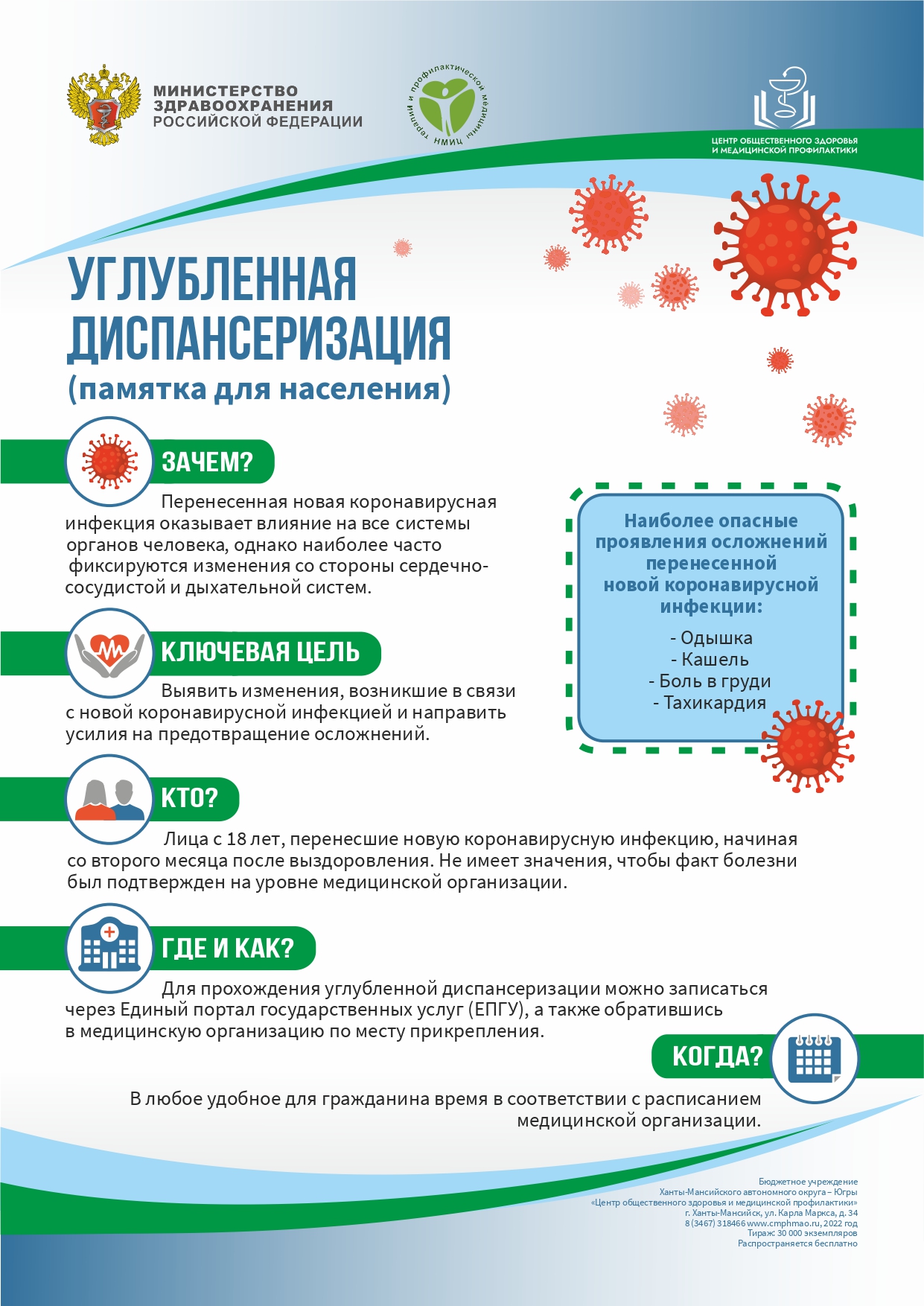 Ключевая цель углубленной диспансеризации - выявить изменения, возникшие в связи с новой коронавирусной инфекцией и направить усилия на предотвращение осложнений.
