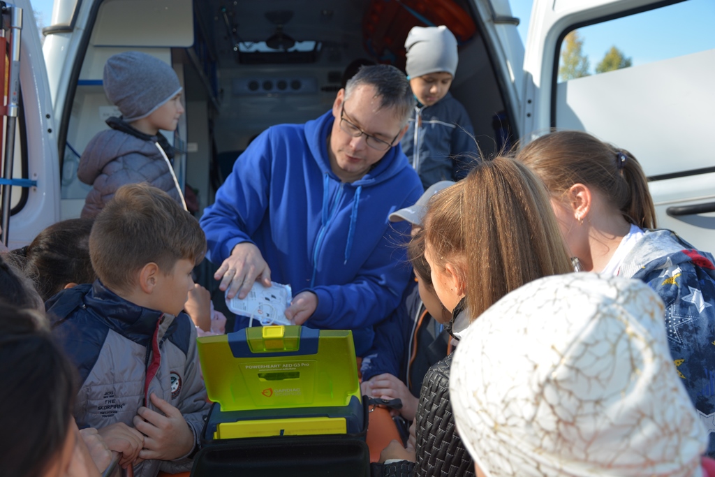 Школьники получили возможность подробно изучить оснащение автомобиля СМП, услышать звуковые сигналы и даже побывать в роли пациента. Заведующий отделением скорой медицинской помощи Урайской больницы Денис Коглик научил учащихся, как правильно вызывать скорую помощь и ответил на все вопросы. После знакомства с экстренными службами ребятам провели небольшой экзамен. Самые успешные из них получили «Звезду спасения».