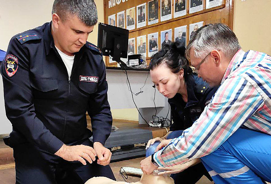 Специалист рассказал о нюансах проведения массажа сердца и искусственного дыхания, ответил на все вопросы, которых было не мало – сотрудники Госавтоинспекции воспользовались уникальной возможностью узнать интересующую их информацию из первых уст. Например, кому оказывается помощь в первую очередь при массовом ДТП, сколько времени проводить реанимацию, когда бригада СМП на подходе и как действовать при различных травмах.